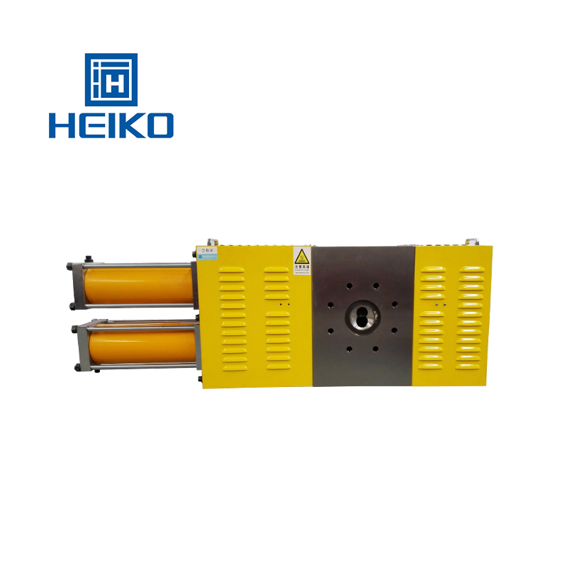 液壓驅(qū)動(dòng)板式快速換網(wǎng)器操作說明:滑板上設(shè)計(jì)兩個(gè)可拆卸式的過濾工位,工作時(shí),一個(gè)過濾工位在主體內(nèi)部進(jìn)行熔體的過濾,另一個(gè)工位在主體外部備用(滑板上設(shè)有不銹鋼加熱棒進(jìn)行加熱保溫,保證和生產(chǎn)溫度的相近)。當(dāng)工作中過濾網(wǎng)上的雜質(zhì)積累到一定程度時(shí),需要換網(wǎng),即可按動(dòng)液壓站上的操作手柄按鈕,啟動(dòng)蓄能液壓站進(jìn)行換網(wǎng)動(dòng)作。